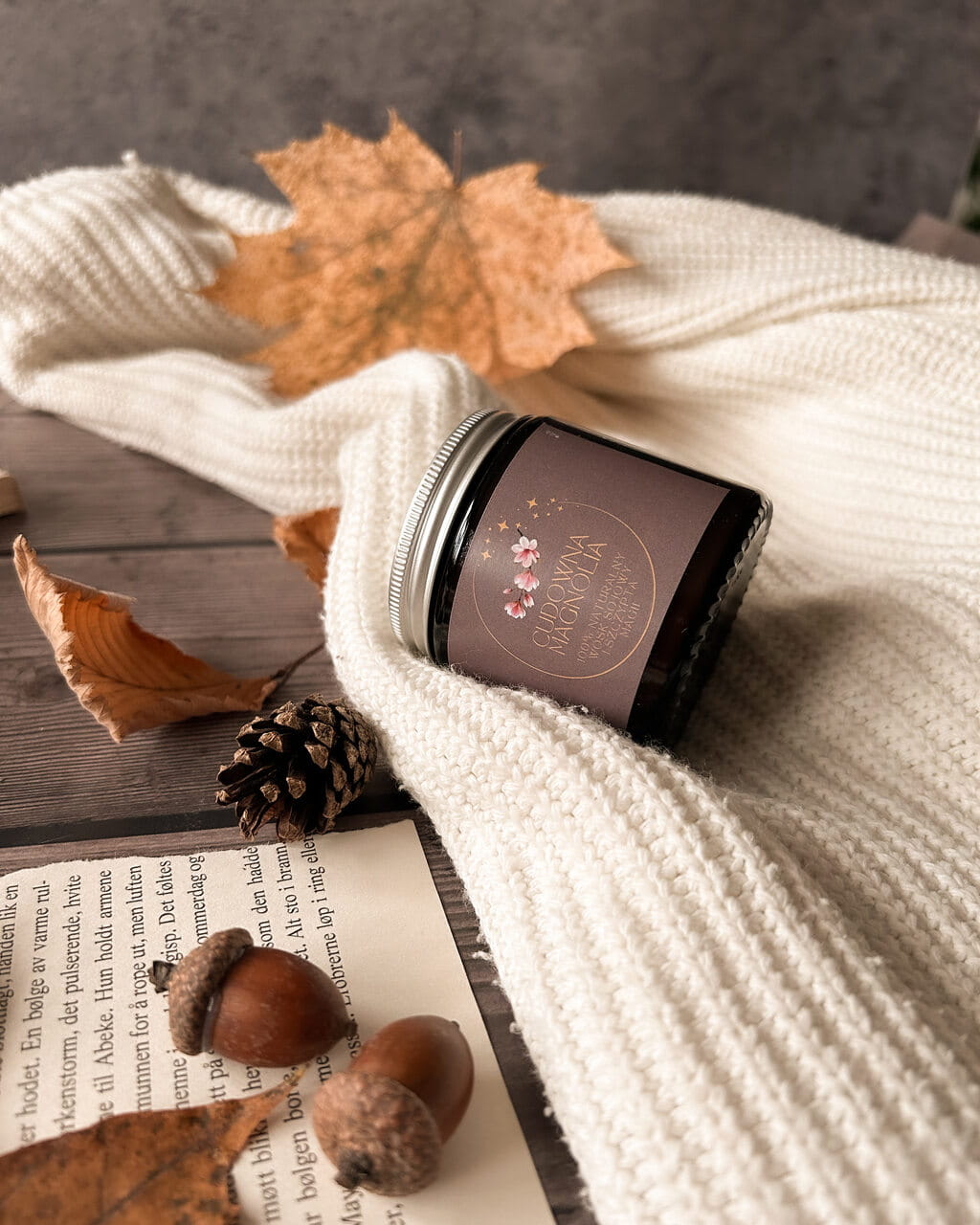 - Świeca sojowa o pojemności: 120ml lub 180 ml